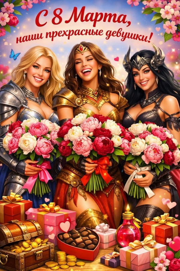 Пусть все ваши бои будут только выигрышными, пусть рядом всегда будут союзники, которые прикроют и отхилят, друзья, которые поднимут настроение, мужчины, которые понимают простую истину:самая грозная воительница всё равно заслуживает гору цветов и внимания. Оставайтесь такими же яркими, сильными и нежными. И чтобы в обоих мирах было как можно больше радости, тепла и приятных сюрпризов.
